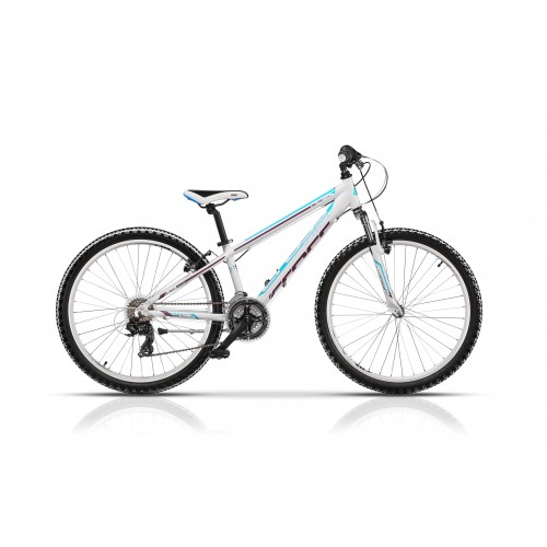 Bicicleta de copii cu roti de 26" si cadru de 320mm. Bicicleta este echipata cu schimbatoare Shimano, 21 de viteze si frane v-brake.